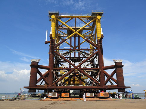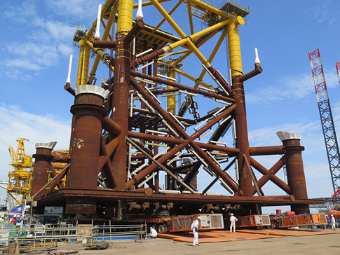 Vận chuyển và hạ thủy cấu kiện dầu khí từ vị trí chế tạo đến cầu cảng và hạ thủy (load-out) lên sà lan biển luôn là một công việc không hề đơn giản đối với bất kỳ nhà thầu vận tải nào, kể cả những tên tuổi lớn trên thị trường thế giới. Bên cạnh trở ngại lớn nhất là trọng lượng siêu khủng của hàng hóa (kiện nhỏ nhất cũng gần 600 tấn) thì việc di chuyển kiện hàng từ vị trí chế tạo đến vị trí hạ thủy phải luôn được thực hiện bằng chủng loại phương tiện thiết bị phù hợp vừa đáp ứng yêu cầu khắt khe về tải trọng do chủ hàng đề ra nhằm đảm bảo an toàn cho hàng hóa cũng như địa hình khu vực làm việc vừa có những tính năng kỹ thuật ưu việt để có thể sàng ngang kiện hàng ở góc cua có thể đạt tới 900 nhằm vượt qua các chướng ngại vật trên tuyến đường di chuyển.