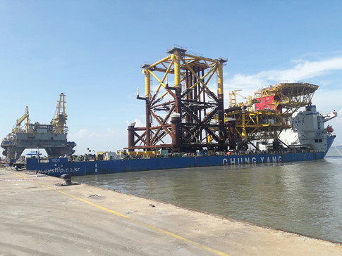 Cấu kiện dầu khí có trọng lượng toàn bộ không thể tháo rời 1.750 tấn và kích thước dài 27 m, rộng 33 m và cao 36 m này là 1 trong 10 cấu kiện thuộc cùng một dự án mà Vietranstimex đã được tín nhiệm giao thầu đối với hạng mục “Vận chuyển và hạ thủy”.